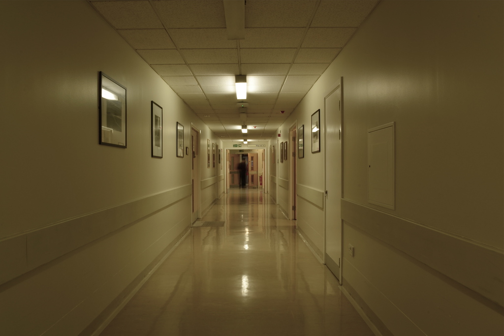Emptiness, quietness, stillness, nothingness are just some of the feelings that are experienced when someone has suffered a loss of a loved one. The photographs interpret scenes where it appears nothing moves, we only catch glimpses of movement, giving us a faint hint of life. The photographs were a visual response to my mother’s death in November 2014. They were taken in the Women’s Hospital Liverpool where she passed away.